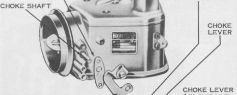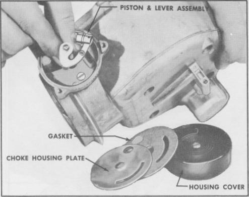Before removing the choke plate screws, the spread-out tip of each screw due to staking, should be removed to prevent damaging the threads in the choke shaft. The tip of each screw can be removed by careful filing. Do not damage the choke shaft or plate with the file.