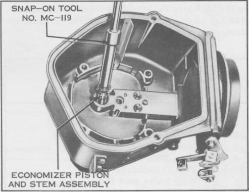 11. Remove the power valve piston and stem assembly using Snap-On Tool No. MC-138.