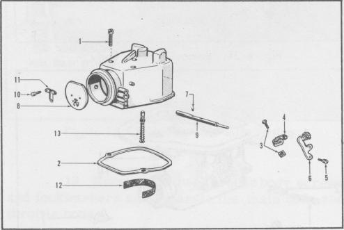 3. Remove the choke shaft nut, lockwasher and spacer. Then remove the shaft and lever assembly and the thermostat lever, link and piston assembly.