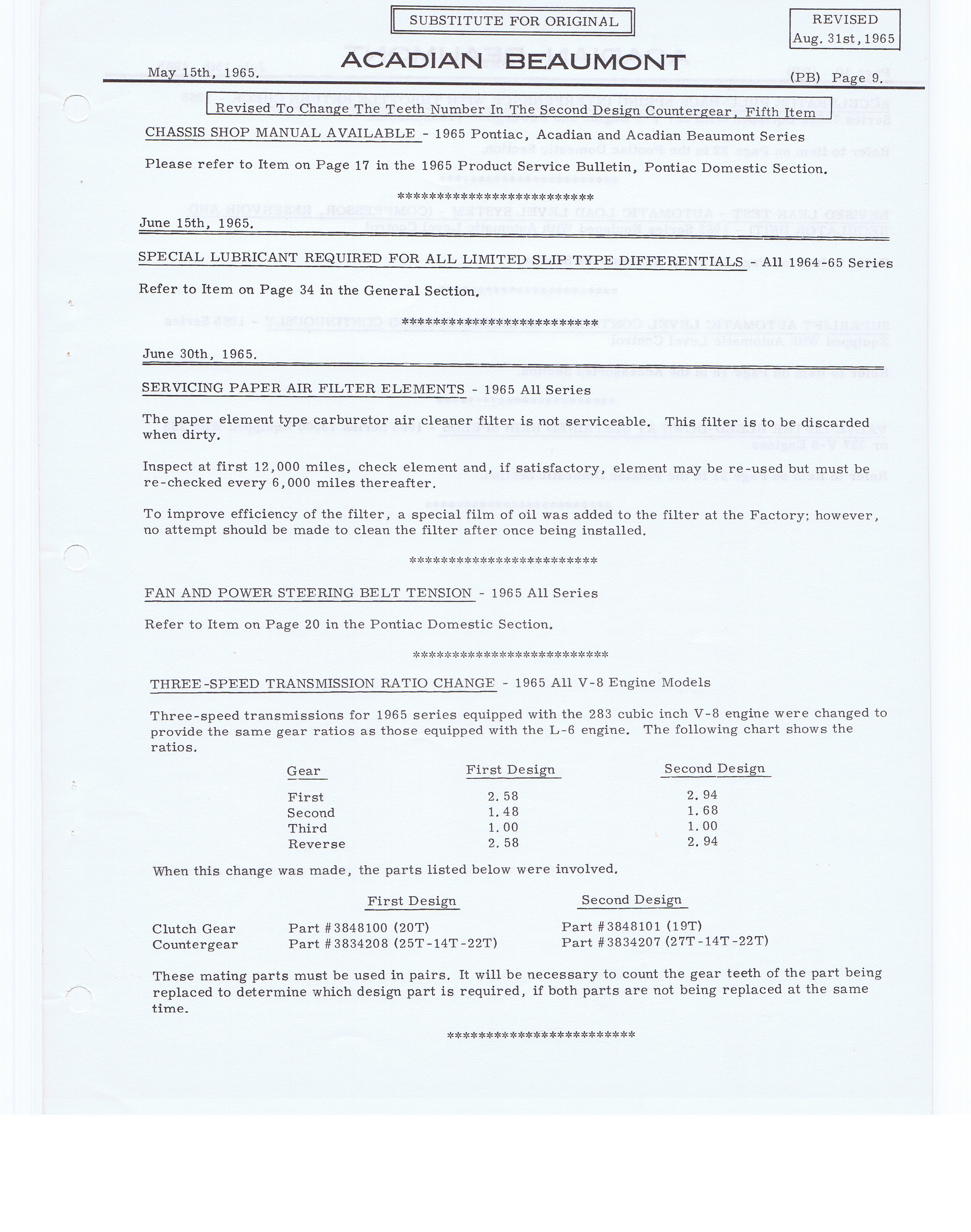 1965 GM Product Service Bulletin PB-116