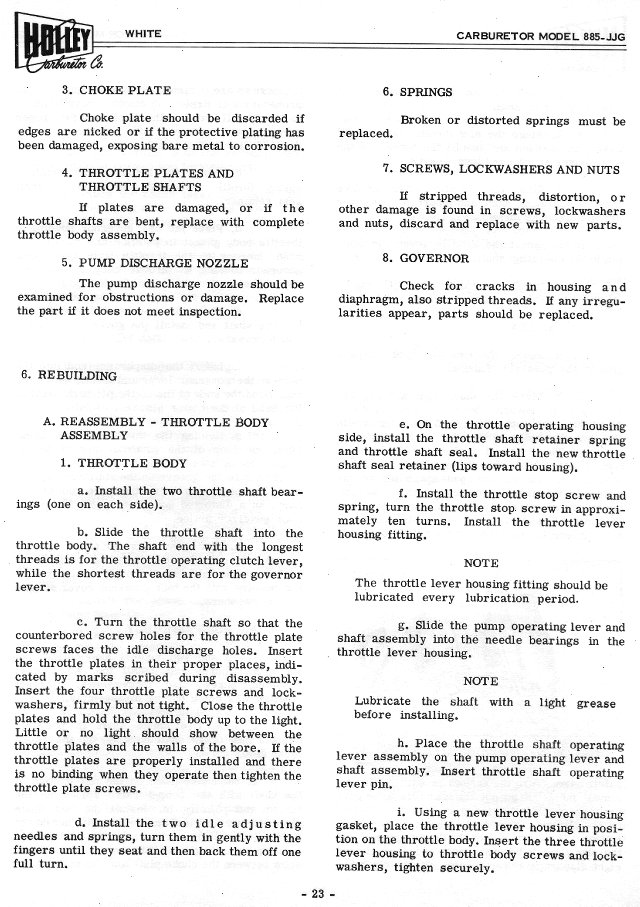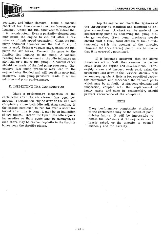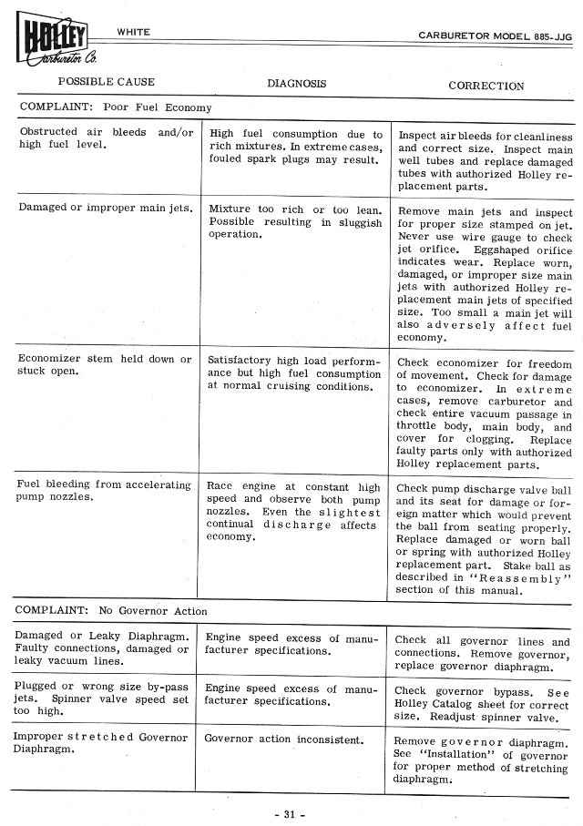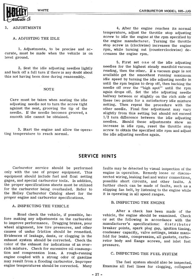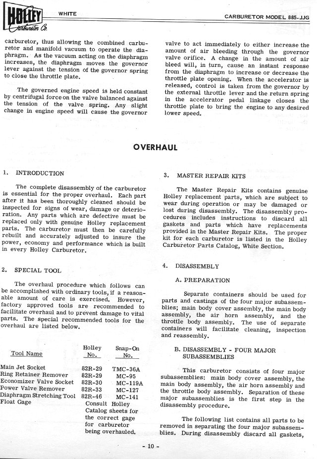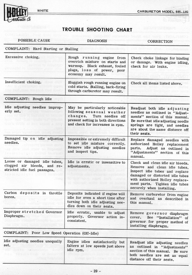 Holley Carburetor Manual for 1955 White Motor Co, Form
