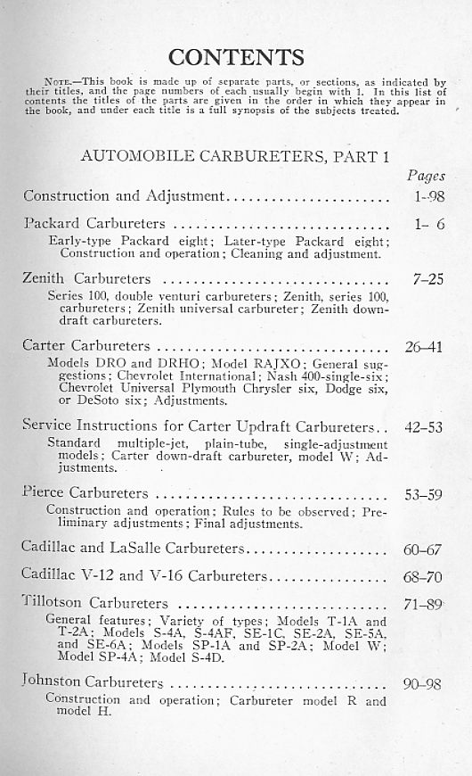 Carter, Pierce, Cadillac, Tillotson, Johnston, Marvel, Schebler, Ball-and-Ball,
